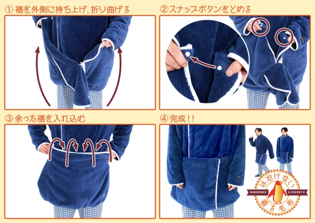 着る毛布のアンケートで大きな不満となっている「はだける」を解決した新型着る毛布。冷え性対策、アウトドアにも。