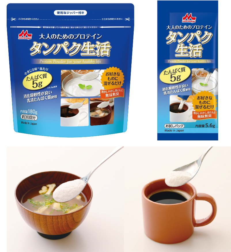 乳で培った技術を活かした製品づくりで100年以上にわたり健康と向き合い、豊かな社会づくりのために力を注いできた森永乳業は、健康寿命延伸のために「タンパク生活」開発しました。純度の高いたんぱく質粉末であり、ほぼ無味無臭で溶かしやすく普段の料理、飲み物にまぜるだけで手軽にたんぱく質を摂取することができる商品です。