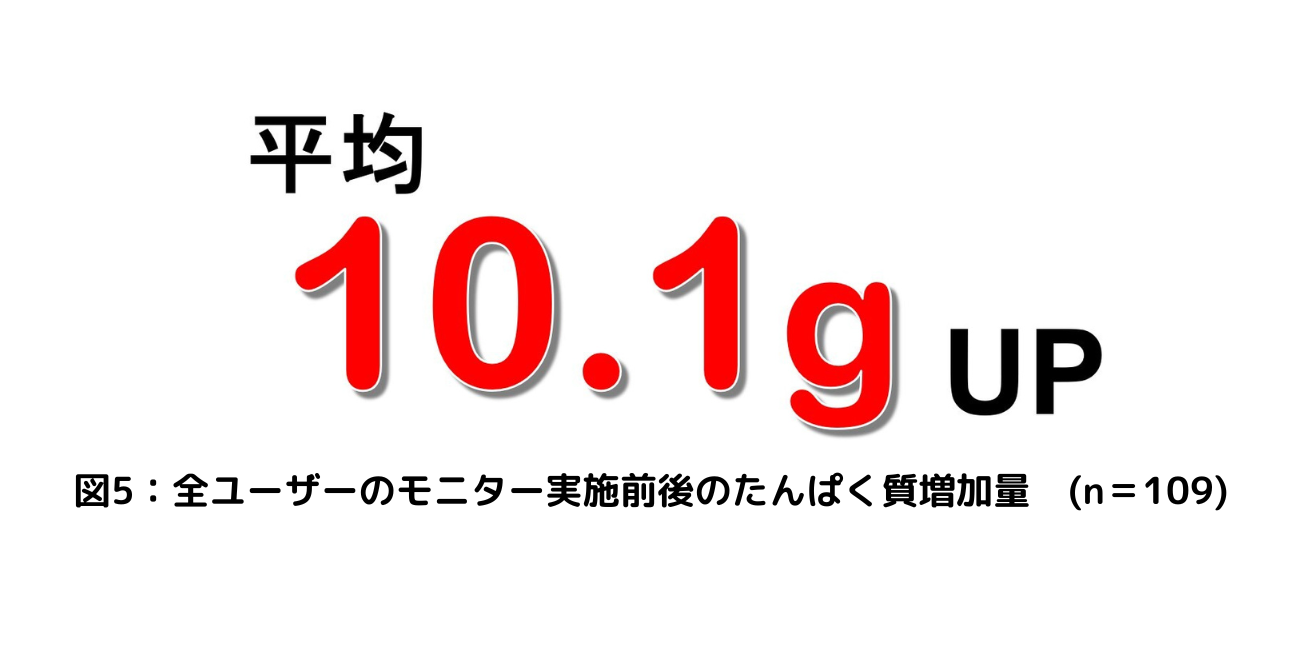 さらに、全ユーザーでモニター実施後に平均10.1gたんぱく質量が増加