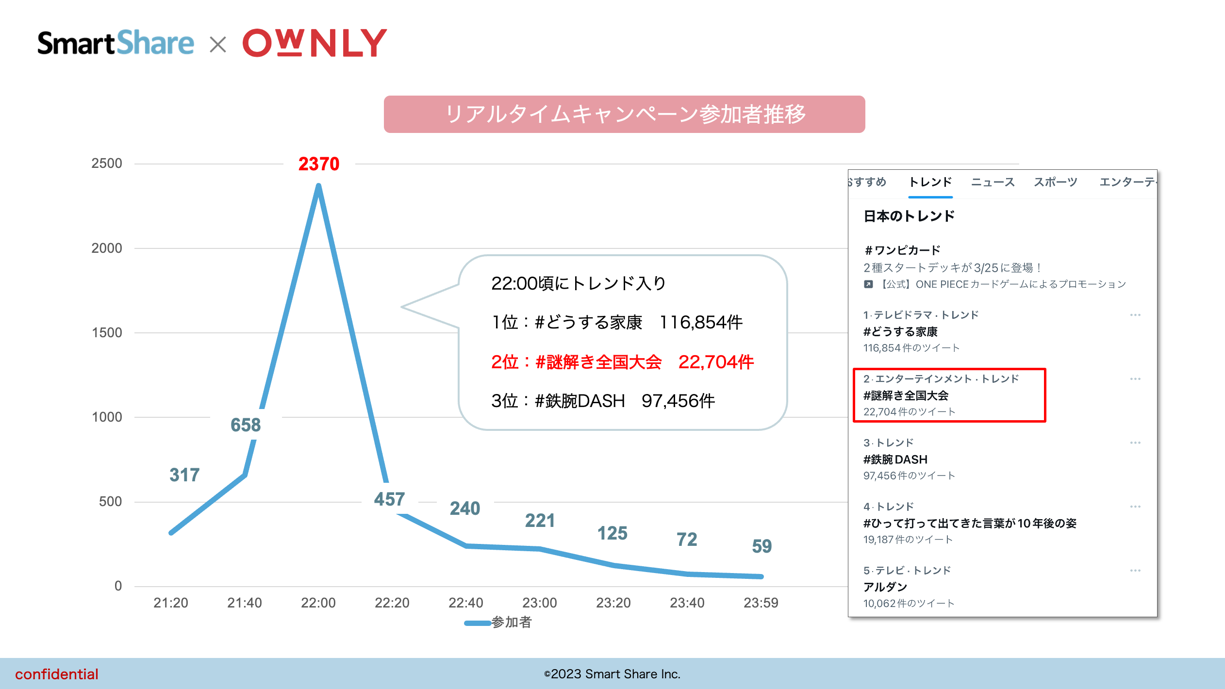 ・特別番組「謎解き日本一決定戦X 2023」の関連ハッシュタグ「#謎解き全国大会」が22,000件以上。放送中にTwitterトレンド入り第2位