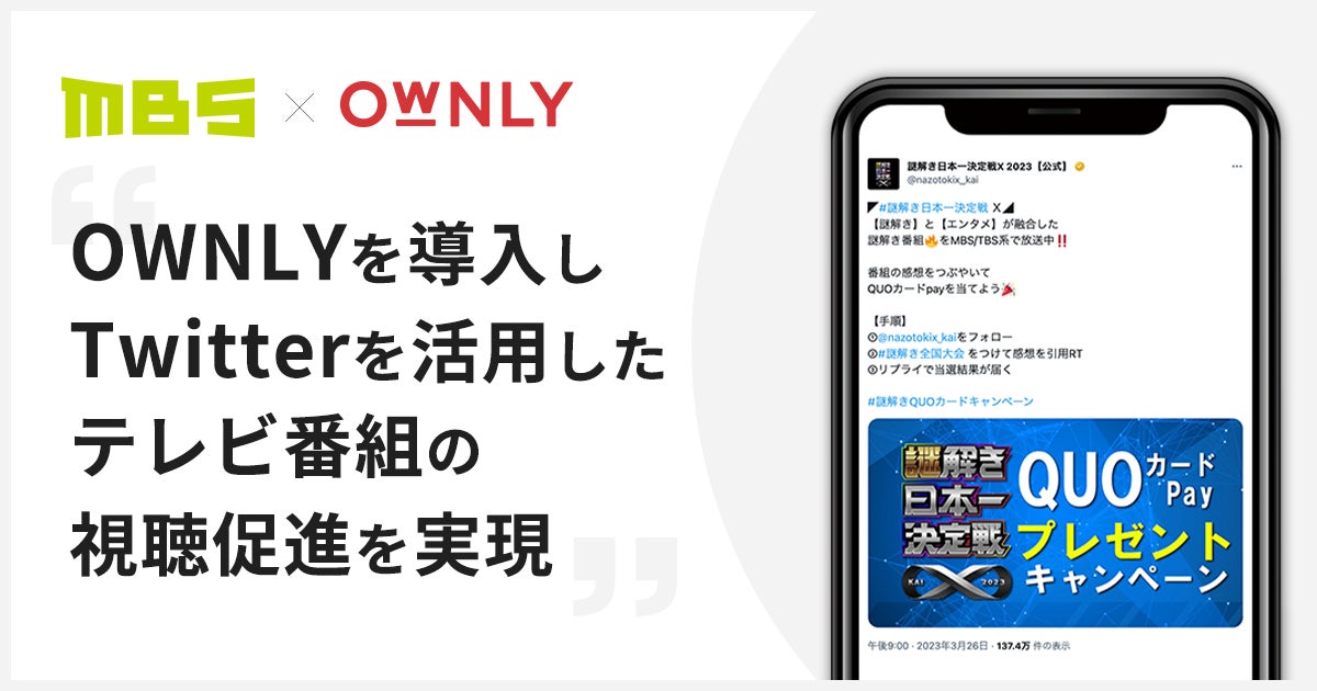 毎日放送が「OWNLY」を使ったTwitter施策でトレンド入り。リアルタイム視聴促進を実現。