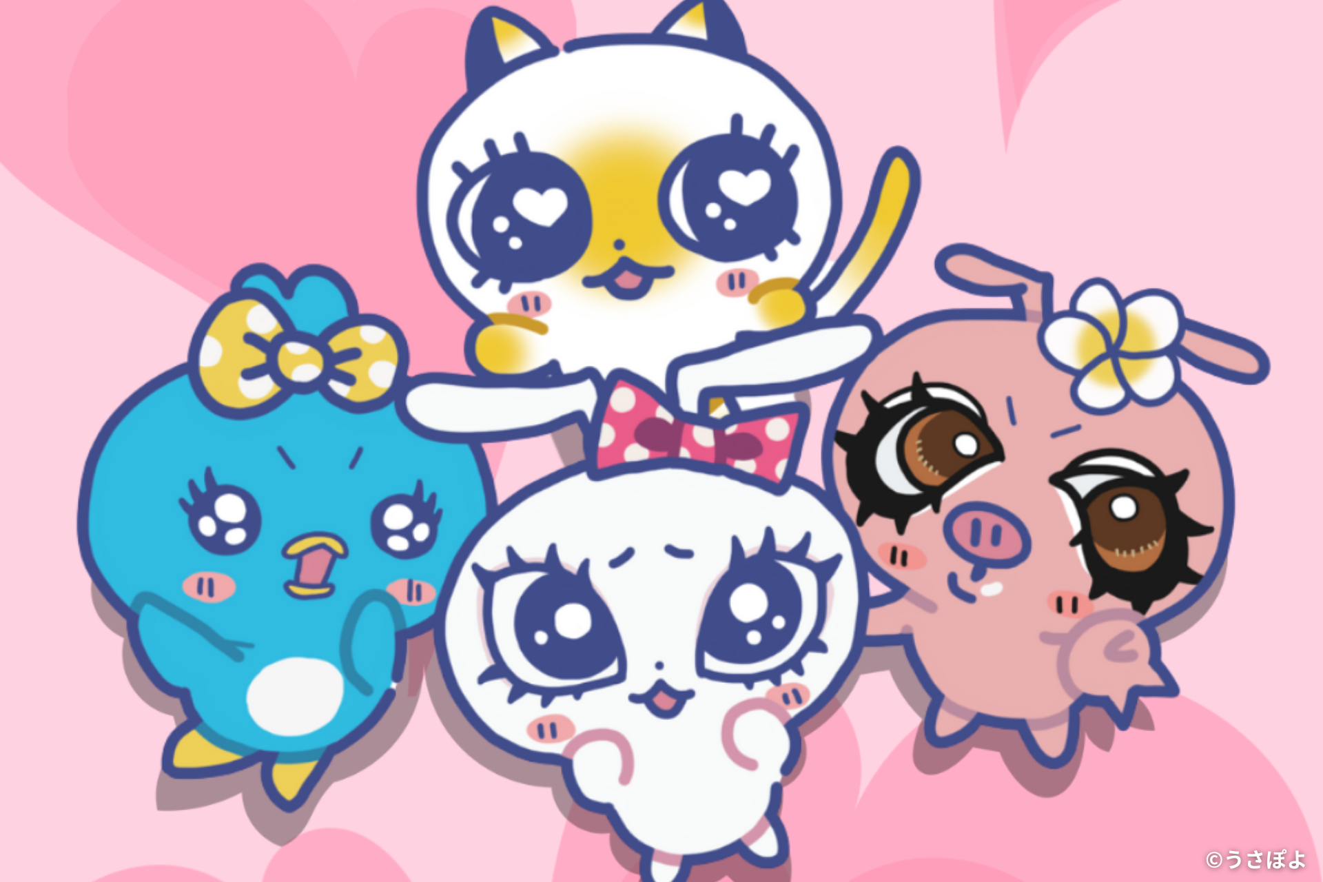 姫ギャル・うさぽよ、黒ギャル・ぶたたん、優等生ギャル・ぺんたむ、白ギャル・ねこぴの4人が、お正月ならではの衣装やシチュエーションで新年を祝う全16種類のラインナップ。