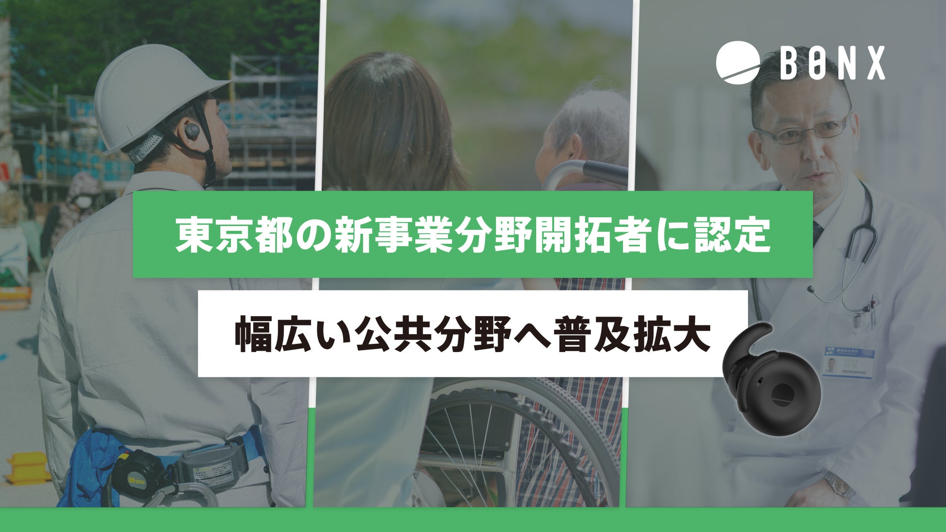 いつでもどこでも声でつながる現場コミュニケーションのワンストップソリューション「BONX WORK」を提供する株式会社BONX(東京都中央区:代表取締役CEO 宮坂貴大、以下、BONX)は、東京都が実施する「現場対話型スタートアップ協働プロジェクト」を経て、令和6年8月29日付けで新事業分野開拓者に認定されたことをお知らせします。今後は東京都の幅広い公共分野へ普及拡大し、コミュニケーション課題の解決を目指してまいります。