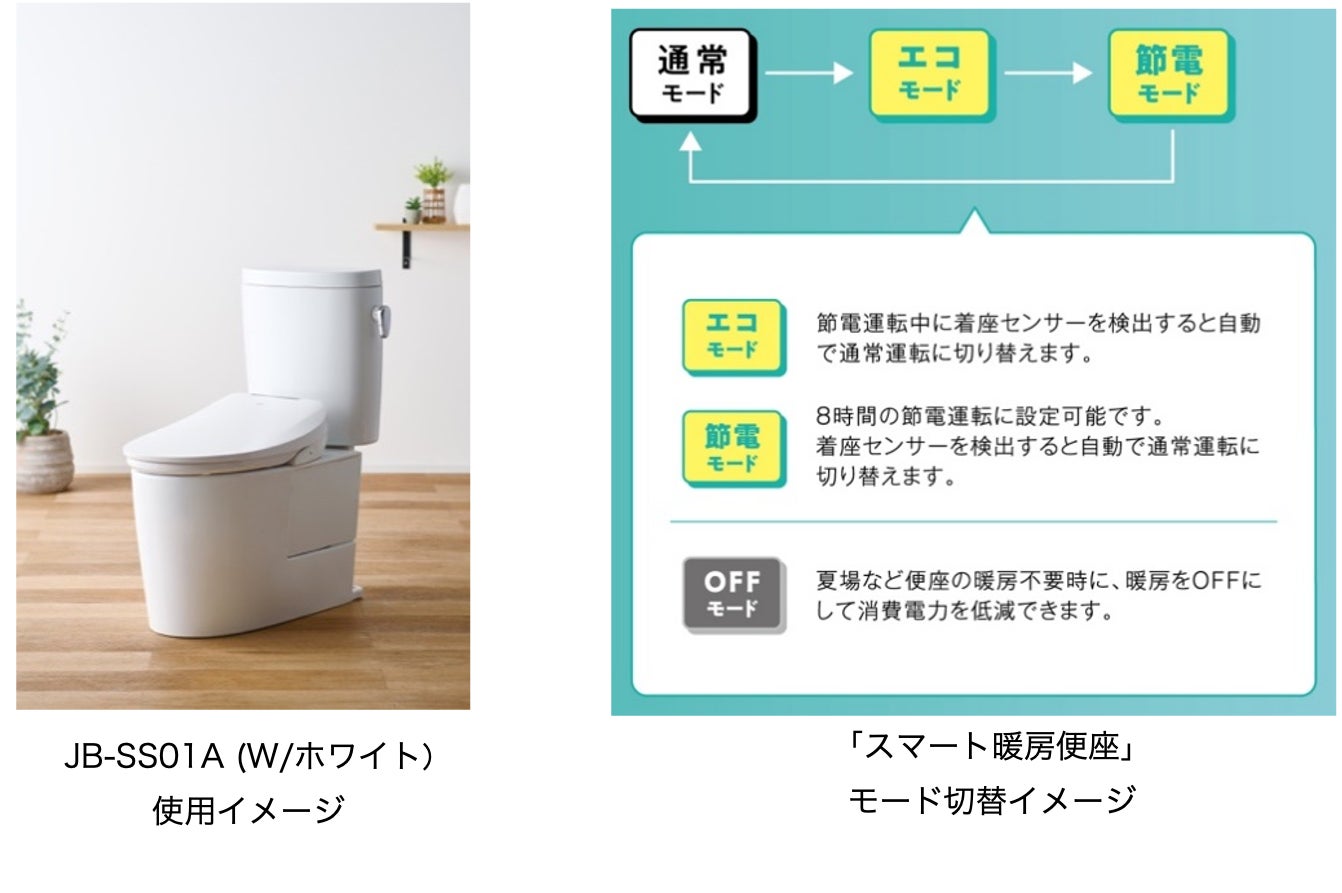 当社がこの度発売するJB-SS01Aは、温水洗浄便座に求められる基本洗浄機能や清潔を保つ機能などを充実させながらも、省電力設計にこだわり、省エネ基準達成率160%※3を達成しています。ご自宅のリノベーション時だけでなく、温水洗浄便座の買い替えや、より省エネ性能の高い温水洗浄便座をお求めの方におすすめの製品です。