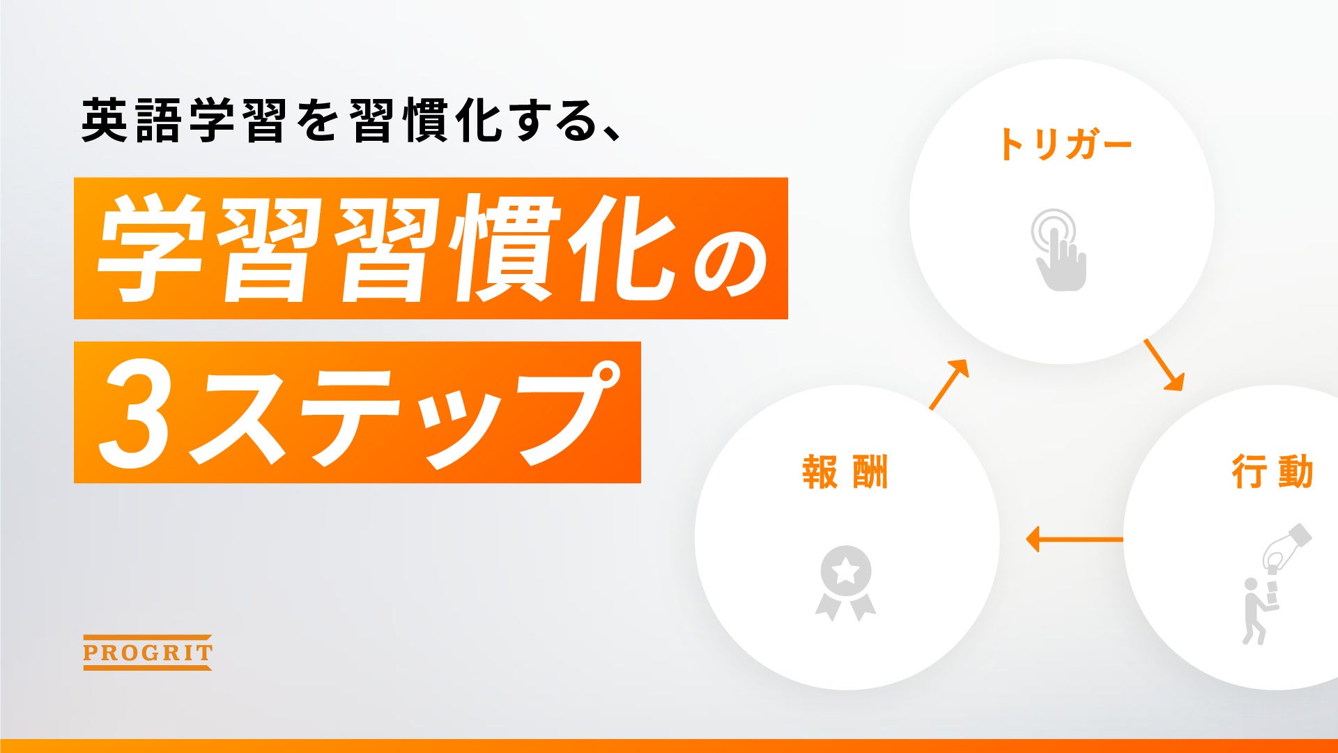 英語コーチング「プログリット(PROGRIT)」を展開している株式会社プログリット(本社:東京都千代田区有楽町、代表取締役社長:岡田 祥吾)は、この度、行動経済学の第一人者である相良氏監修のもと、英語学習を習慣化するためのフレームワーク「学習習慣化の3ステップ」を定義いたしました。今後、「学習習慣化の3ステップ」に基づいたコーチングを行うことにより、お客様の英語力向上をより一層支援してまいります。