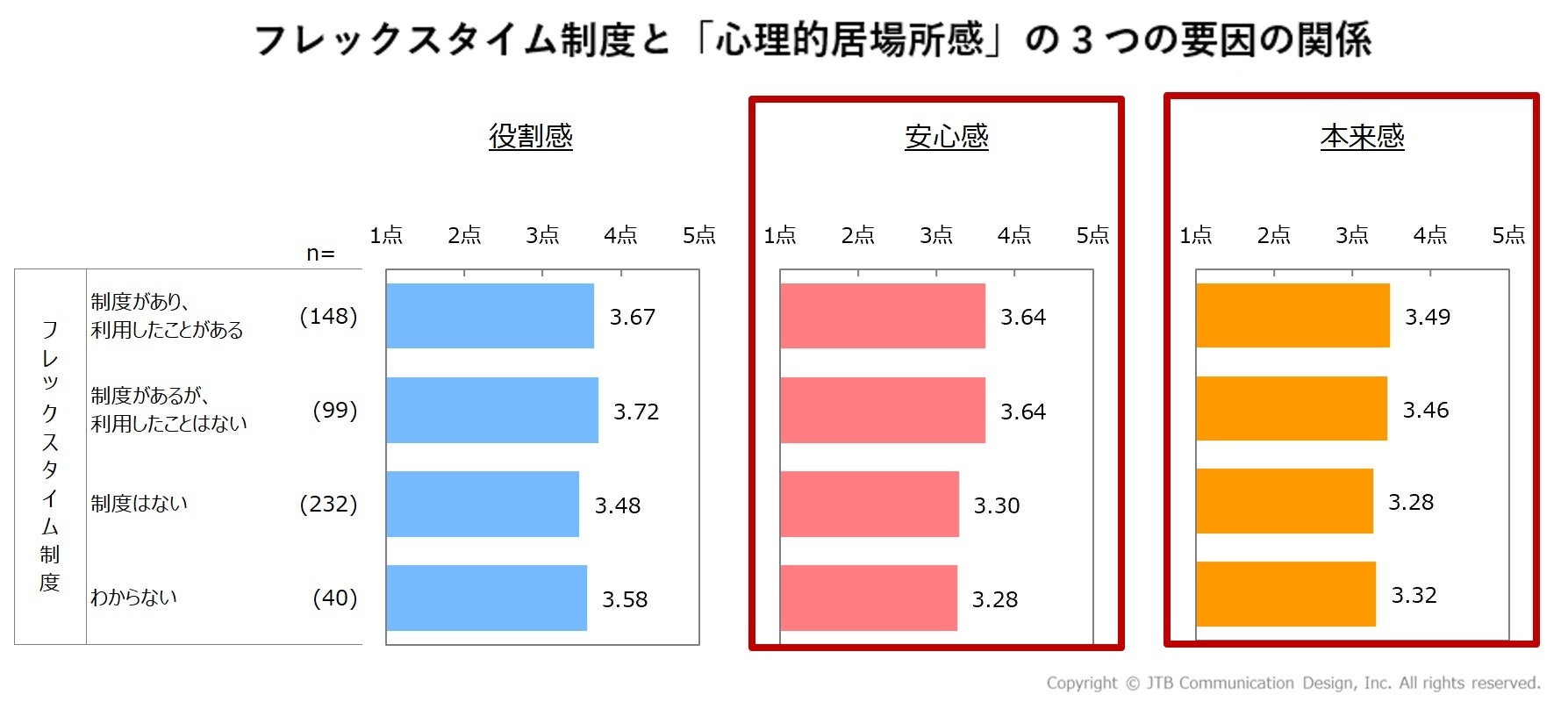 職場内で役割が明確になることや自分の存在価値を実感できることが、「役割感」の向上につながり、「心理的居場所感」を高める可能性が示されました。