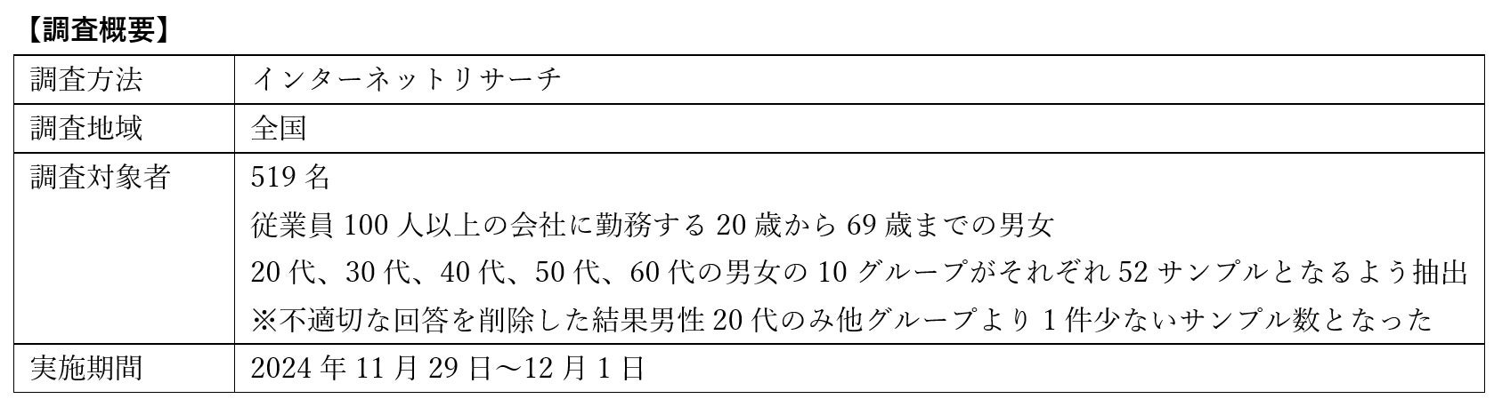 従業員100人以上の会社に勤務する方を対象に519人にアンケート調査を実施。