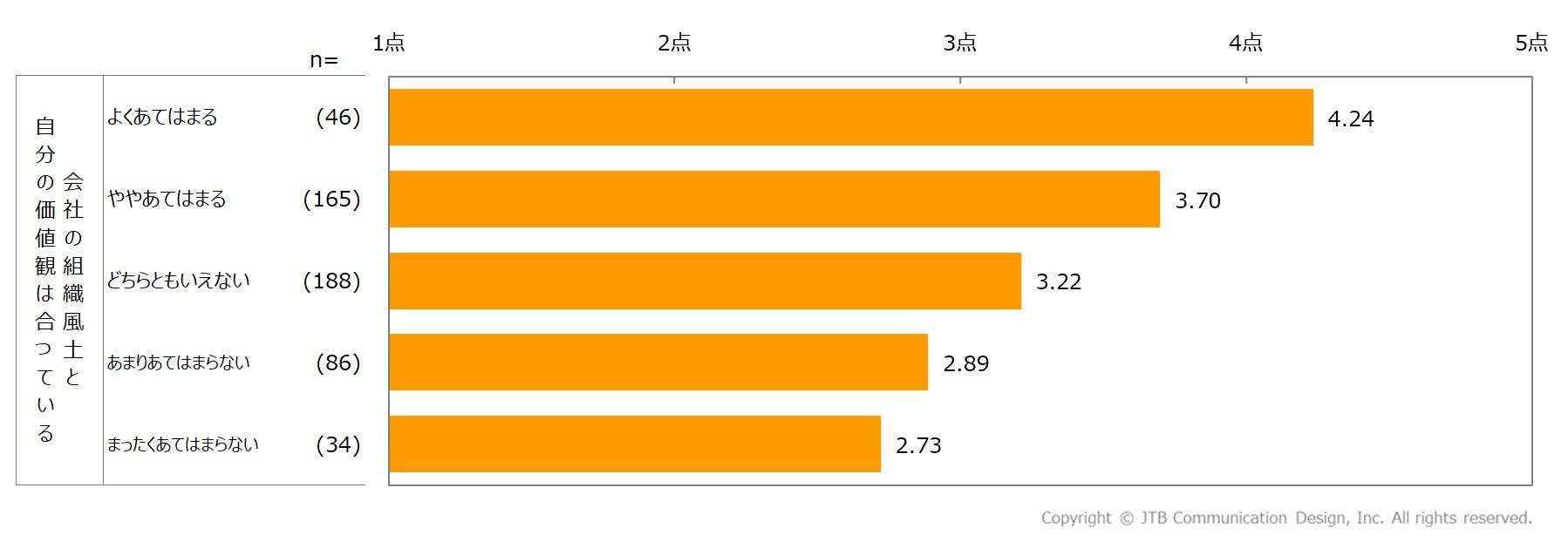 いつも自分を見失わないでいられるなどの意識を表す「本来感」と特に相関が高い職場の環境要因は、「成果」、「包摂性」(5)、「会社の価値観との一致」(4)でした。