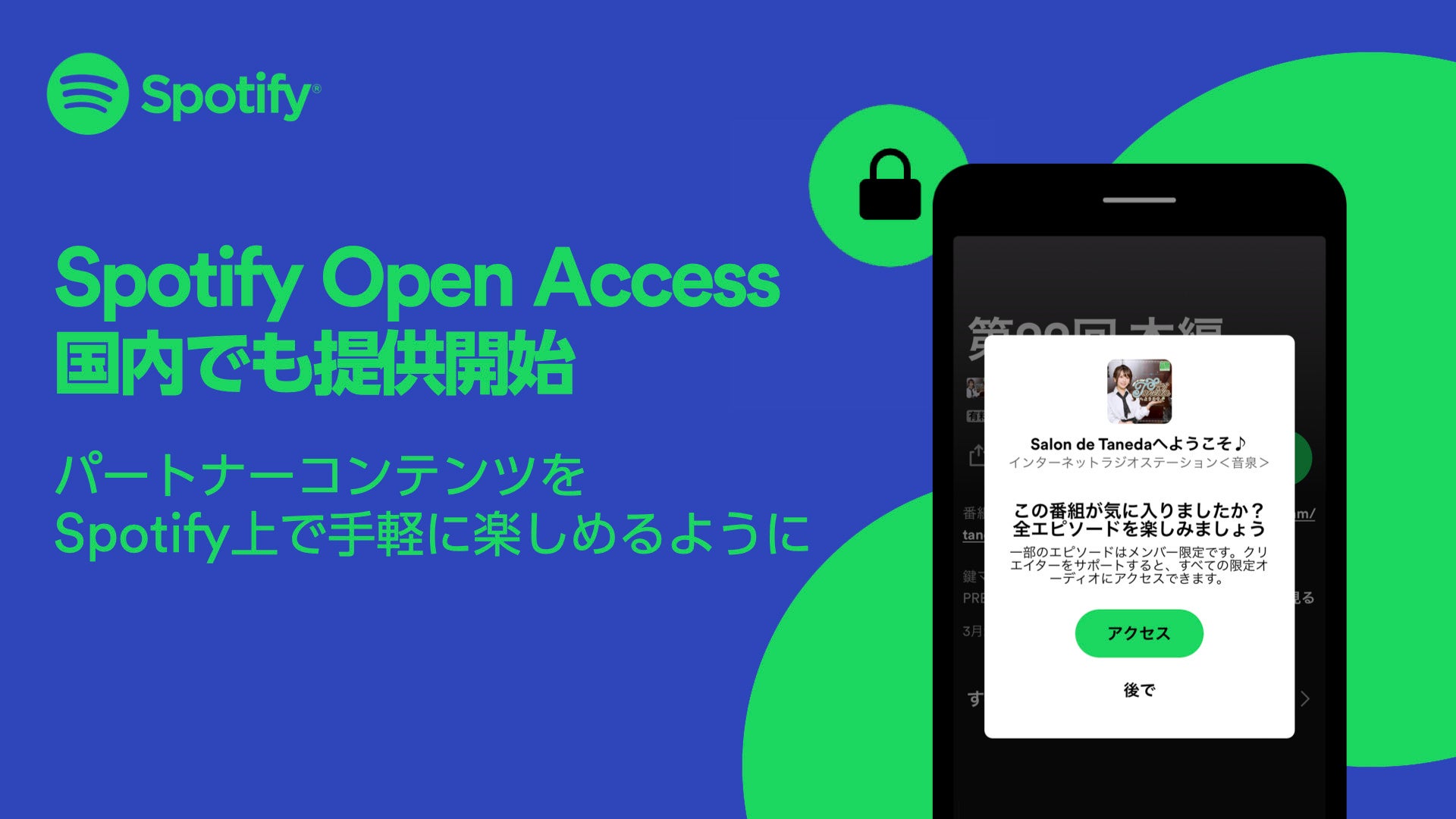Spotify、オーディオサービスが有料会員向けにSpotify上で音声コンテンツを配信できる新たなツール「Spotify Open Access」を国内でも提供開始