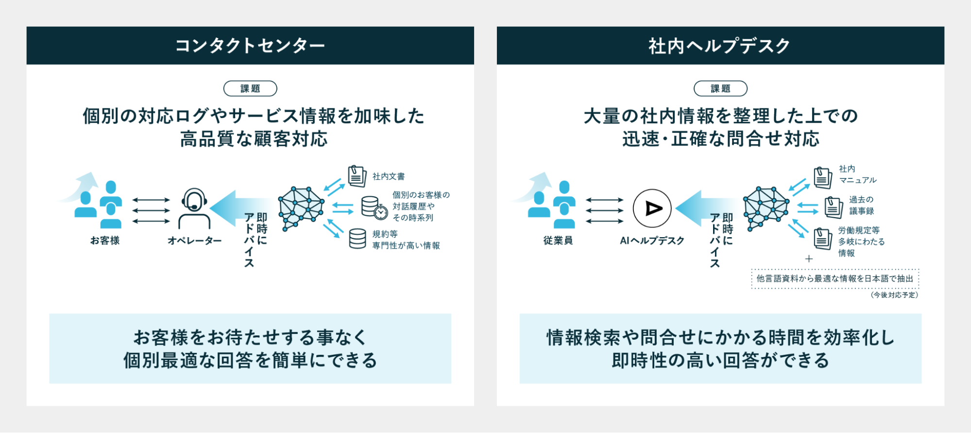 LLM実装用途:回答の即時性を生かし、コンタクトセンターや社内ヘルプデスク業務を刷新