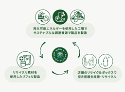 今後はこれまで以上に、サステナブルな消費行動を促す活動へ取り組む事を目標といたします。各ストアでの回収数を増やし、製品の空き容器のリサイクルを促進いたします。
