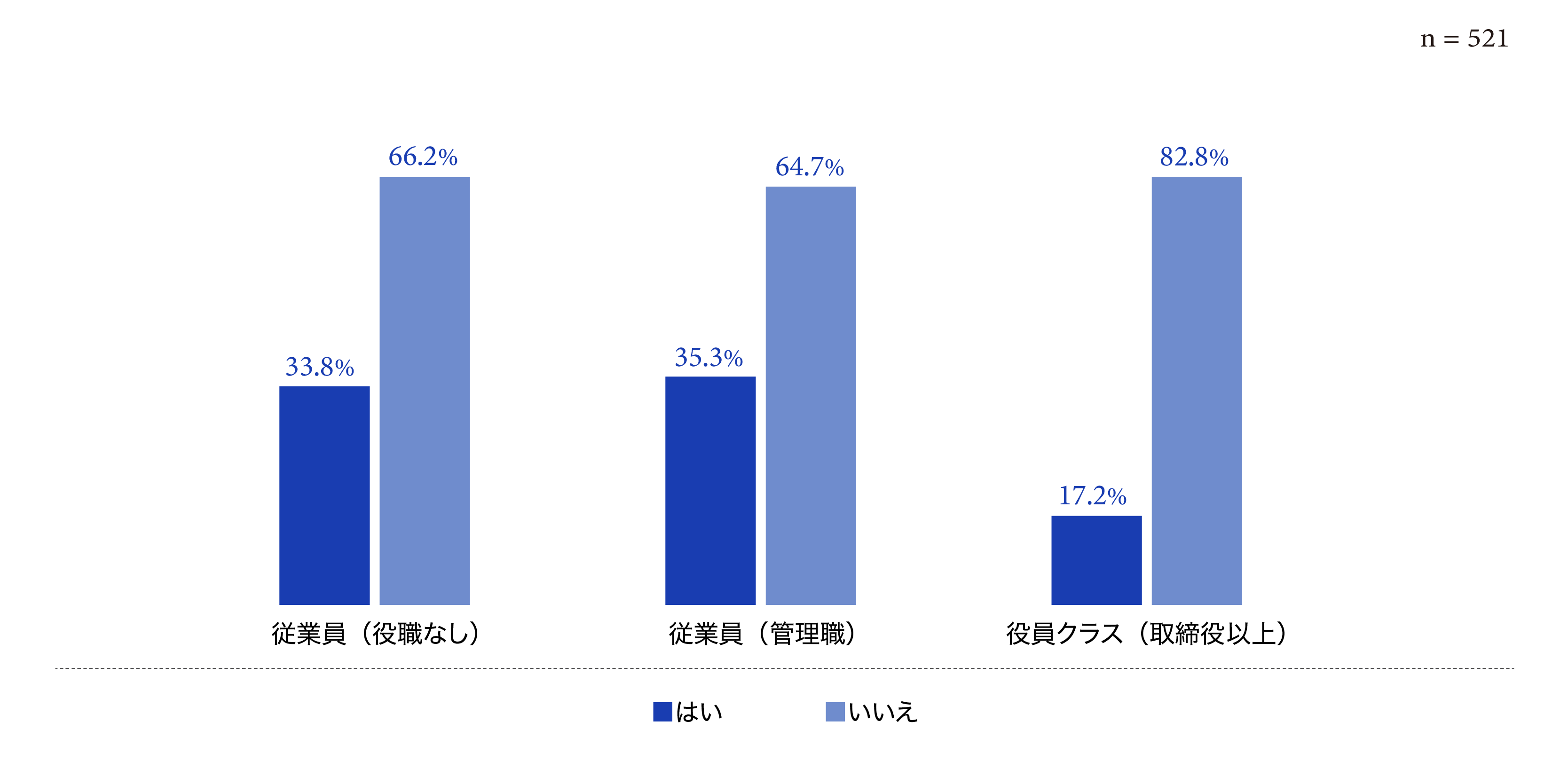 【グラフ3:リモートワーク許可のもと不合理な出社をしたことがあるか(役職別)】