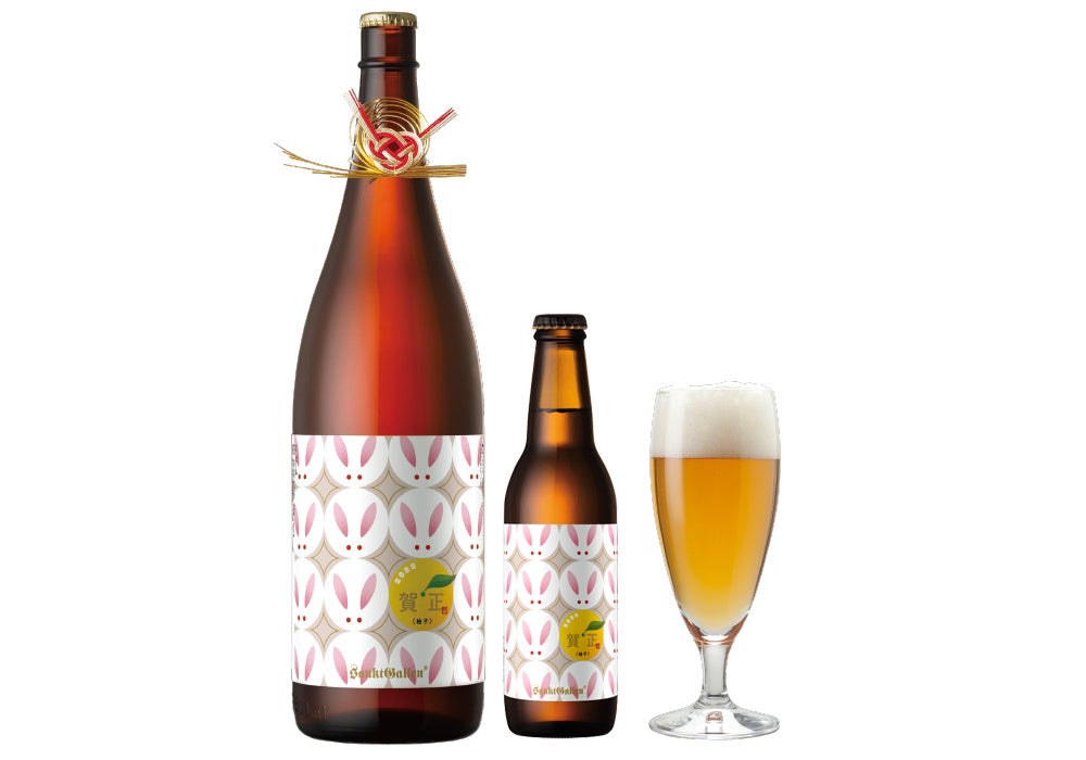 サンクトガーレン「賀正ビール 柚子 2023 干支ラベル 卯」2022年12月8日発売。柚子を丸ごと使用した香り華やかなビール。一升瓶ビールと、小瓶サイズの2種類。