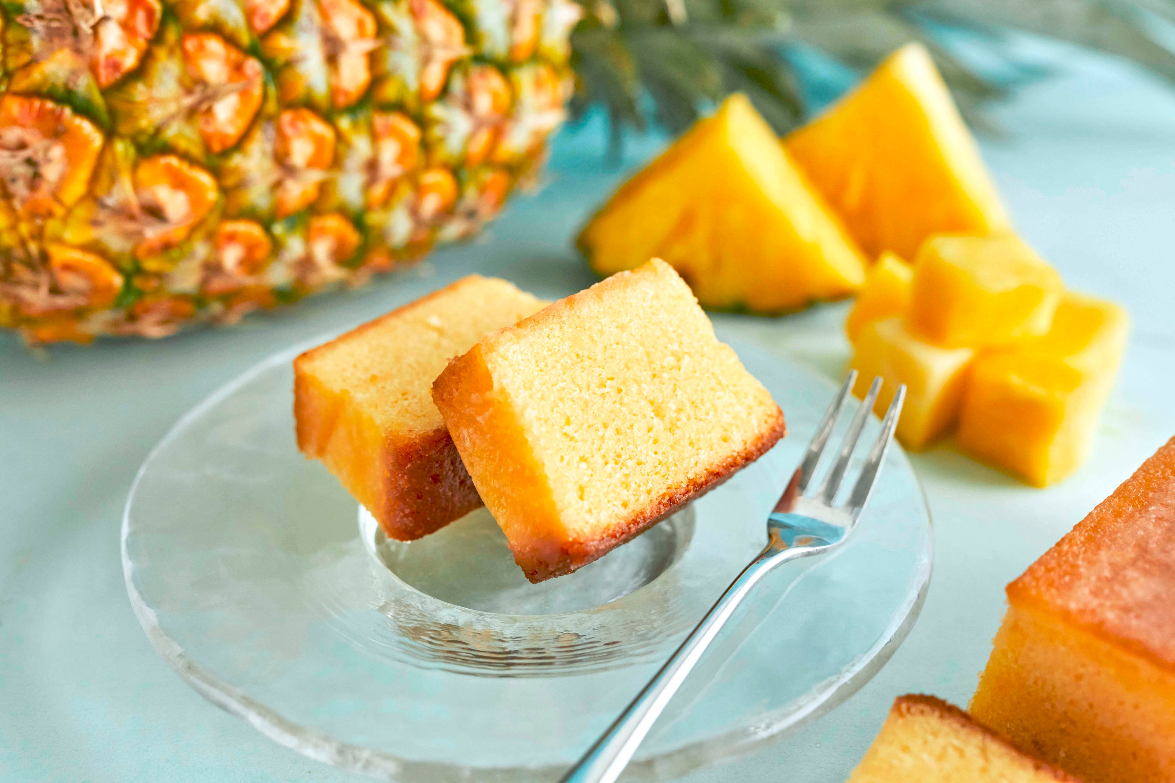 国内生産量が1%以下の、沖縄県名護市で栽培される希少な品種のパイナップル、ゴールドバレルを使用したパイナップルケーキです。糖度が高く、芯まで食べられるほど柔らかい果肉で、パイナップル特有のえぐみや酸味が少ない、爽やかな甘みが特徴です。ゴールドバレルの甘味を引き立てるためにカカオの果肉部分で作り上げたフルーツビネガーを加え、甘みと酸味のバランスにこだわりました。