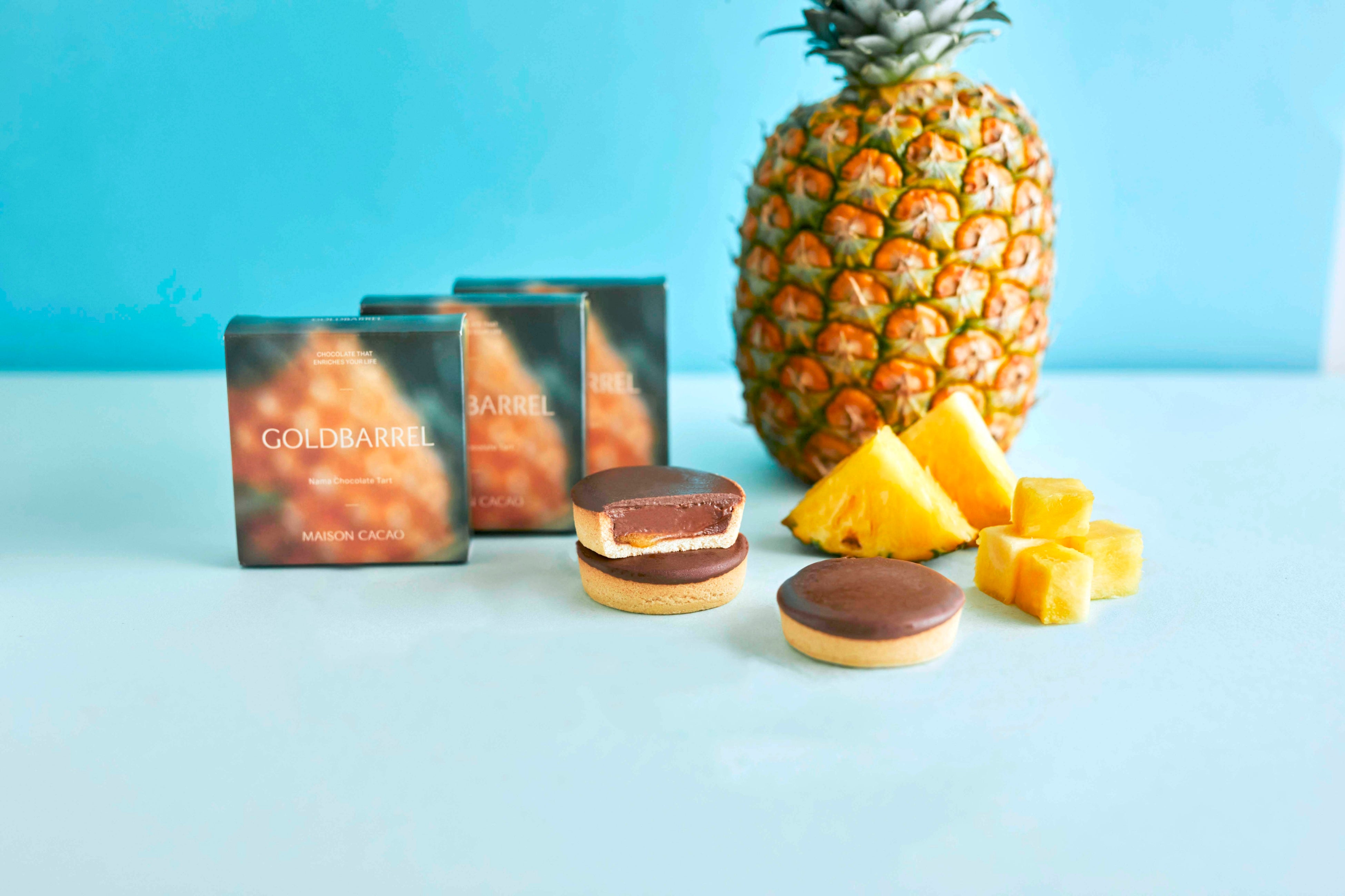 鎌倉発祥の「メゾンカカオ」(アロマ生チョコレート専門店、創業者:石原紳伍)は、日本各地の旬の素材を使用した月替わりのスイーツを提案する「旅するメゾン」より、7月の限定スイーツを発表します。沖縄県名護市のパイナップル、黄金色に輝く大きな樽型のゴールドバレルと、宮古島のアップルマンゴーを使用しています。7月1日から7月31日の期間限定で登場します。