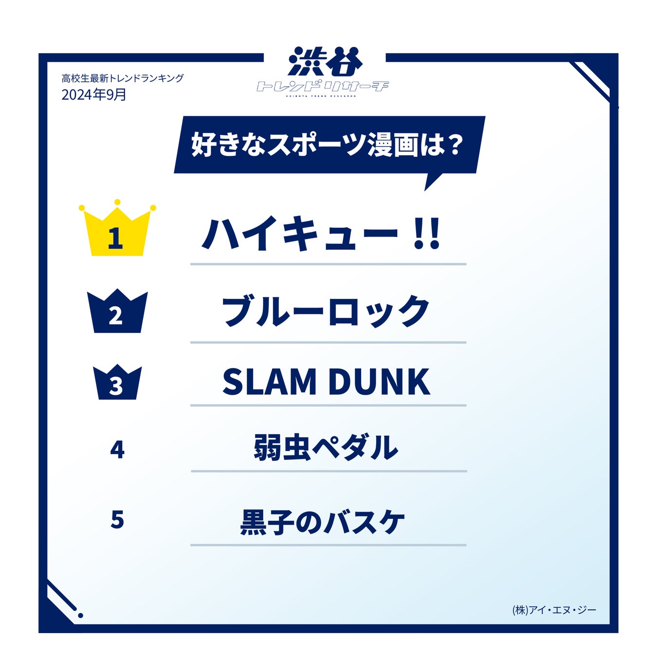 バレーボール漫画の「ハイキュー!! 」が3年連続で首位にランクイン。「バレーボールやっていたので気持ちがわかる」(高1・女子)「ハイキュー!! の影響でバレーを始めた!」(高2・女子)など高い共感性と熱いストーリーに惹きつけられているようで、2020年に連載が終了しているにも関わらず人気を博しています。2位には「ブルーロック」が入選。「アクションシーンがかっこいい」(高3・女子)「サッカーをしているシーンがオーラが出ていてかっこいい!」(高2・女子)といったプレー中の迫力あるシーンが印象に残っている様子がうかがえます。3位は「SLAM DUNK」が入選。「面白いしThe青春で試合の臨場感もあってドキドキするから」(高3・女子)「メンタル面や技術面でたくさん参考にしました」(高3・女子)などの意見が寄せられました。