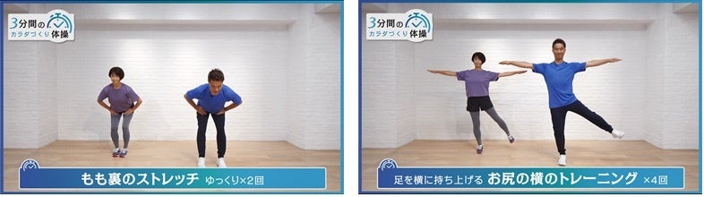 転倒災害予防につながるストレッチ、筋力トレーニング、バランストレーニングで構成された3分間の体操を実施します。体操の前に、動きの目的や動き方のポイント等の解説を行います。またこの体操は、受講後も継続して実践いただけるよう、オンデマンド配信します。