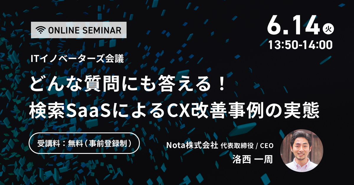 日経クロステック主催「ITイノベーターズ会議 PoCで終わらせない!CX向上に効くデジタル戦略」にNota代表の洛西が登壇! ~6月14日(火)開催~