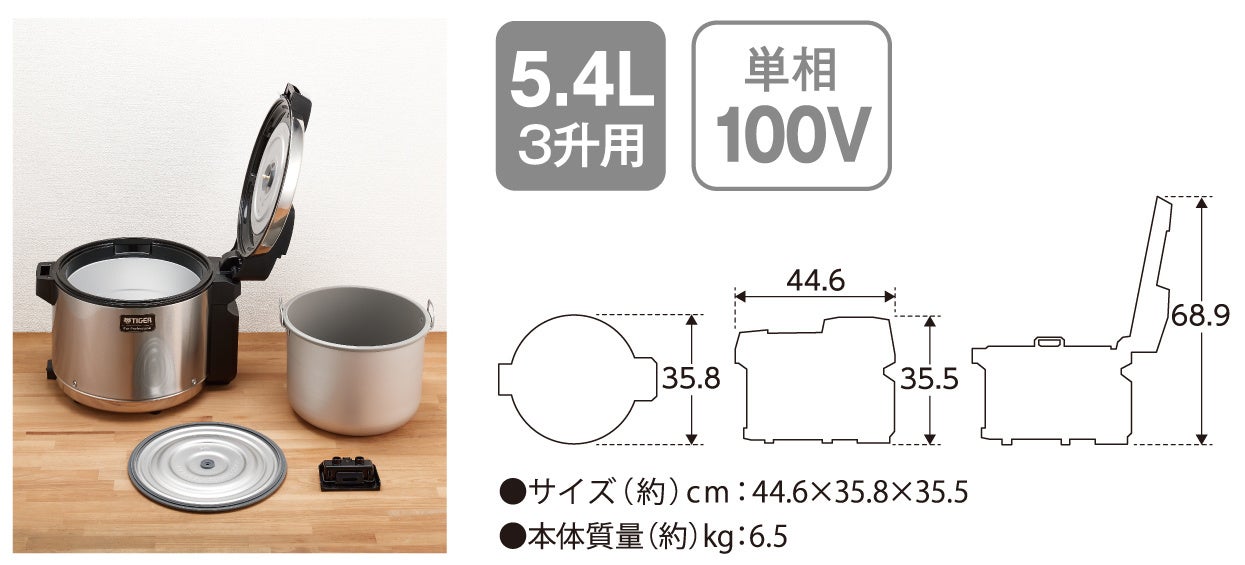 製品ページ https://www.tiger.jp/product/commercial-ricecooker/JHV-A.html