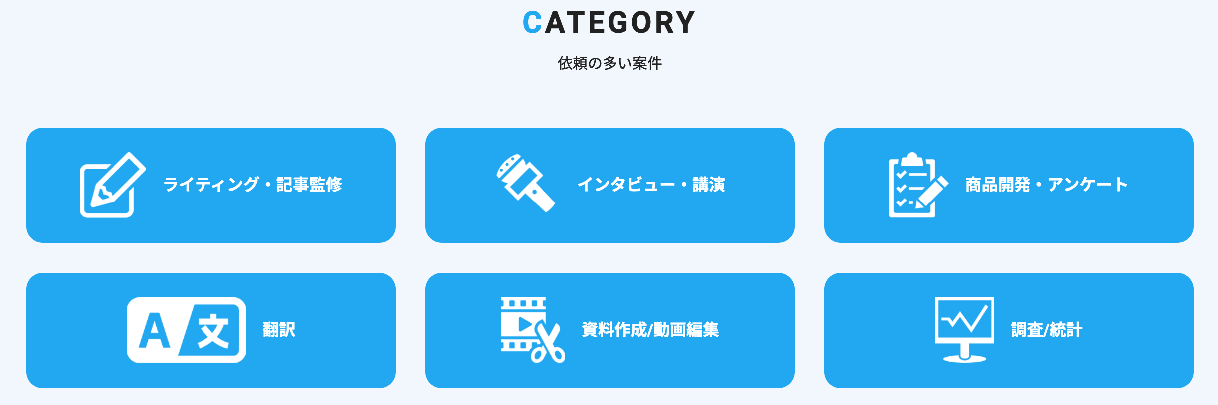 幅広い分野で依頼ができる