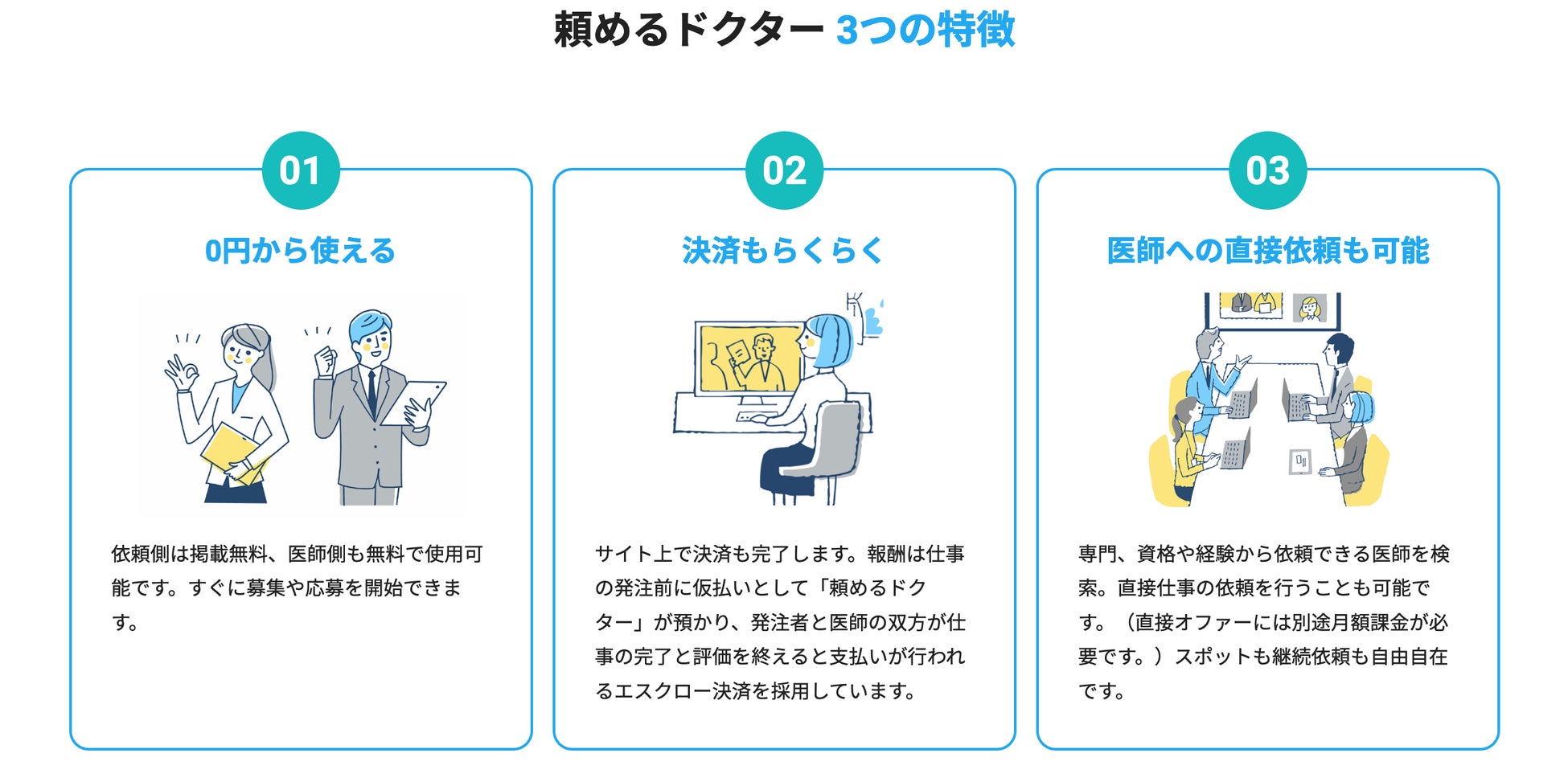 - 「頼めるドクター」ならではの3つの特徴