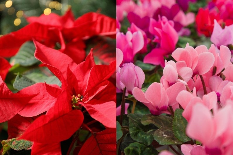 - 温かみのあるオレンジ色のイルミネーションと冬ならではの花々のコラボレーション