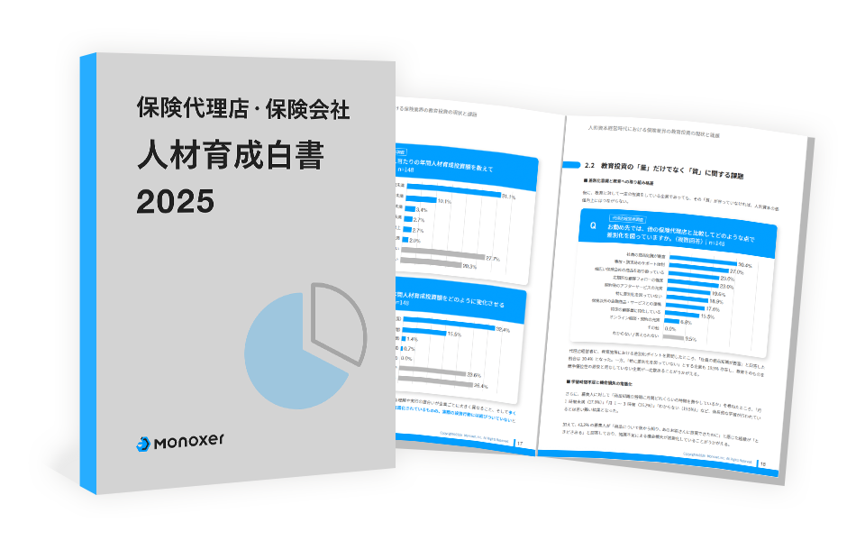 記憶のプラットフォーム「Monoxer(モノグサ)」を提供するモノグサ株式会社(本社:東京都千代田区、代表取締役 竹内 孝太朗、畔柳 圭佑)は、保険業界における人材育成の現状と課題を包括的に分析した「保険代理店・保険会社 人材育成白書 2025~人的資本経営時代における教育の現状と課題~」を発行いたします。