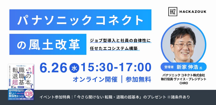 【6/26(水)オンライン開催】ハッカズーク監修「今さら聞けない転職・退職の超基本」 出版記念イベント『パナソニック コネクトの風土改革〜ジョブ型導入と社員の自律性に任せたエコシステム構築〜』を開催
