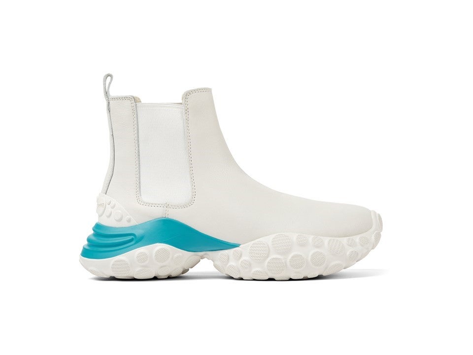 デビューコレクションは、プレミアムレザーとリサイクルテキスタイルを組み合わせたマルチマテリアルスニーカーと、ハイブリットなチェルシーブーツの2型が揃います。明るいシーズナルカラーをアクセントに効かせたカラーリングがポイントで、中には環境に配慮した無染色レザーのモデルもご用意。