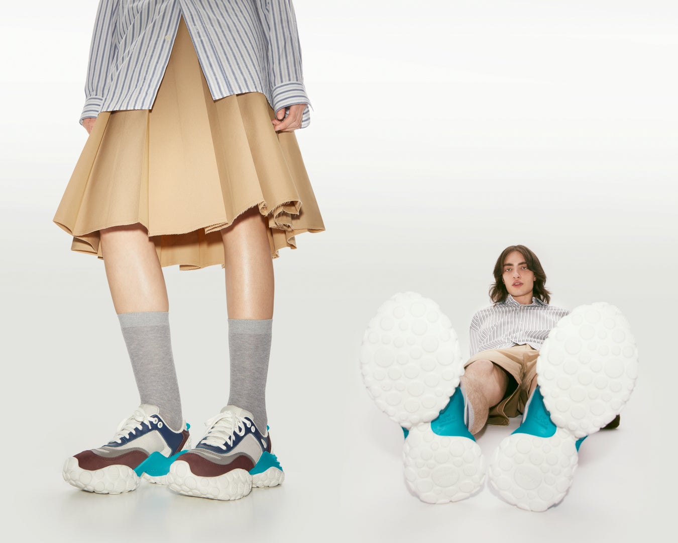 この秋デビューする新ユニセックスライン「PELOTAS MARS(ぺロータス マーズ)」は、ボール形状のアウトソールが目印の「PELOTAS(ペロータス)」シリーズの最新作です。シリーズの特徴であるボリューム感を活かしながら、より大胆でテクニカルなルックスを備えたユニセックスラインとして誕生しました。