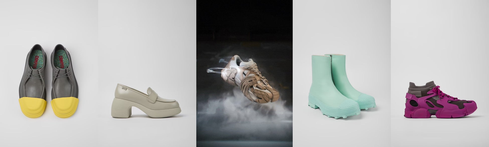 左から) CAMPER 「JUNCTION 」、CAMPER 「THELMA 」、CAMPERLAB 「TORMENTA 」、CAMPERLAB 「TRAKTORI」、CAMPERLAB 「TOSSU」
