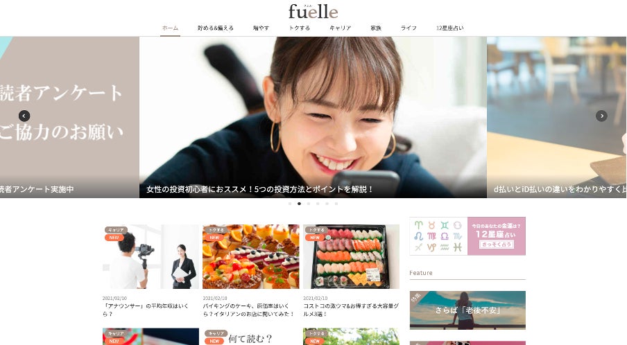 『fuelle』(https://fuelle.jp/)は2018年3月にスタートし、20~40代の働く女性に向けて将来に向けて「貯める&備える」方法はもちろん、キャッシュレス決済やポイントを活用して「トクする」方法、無理なくコツコツ資産運用でお金を「増やす」ための基礎知識など、女性の日常を大切にしながらお金について考えられるコラムをお届けしています。