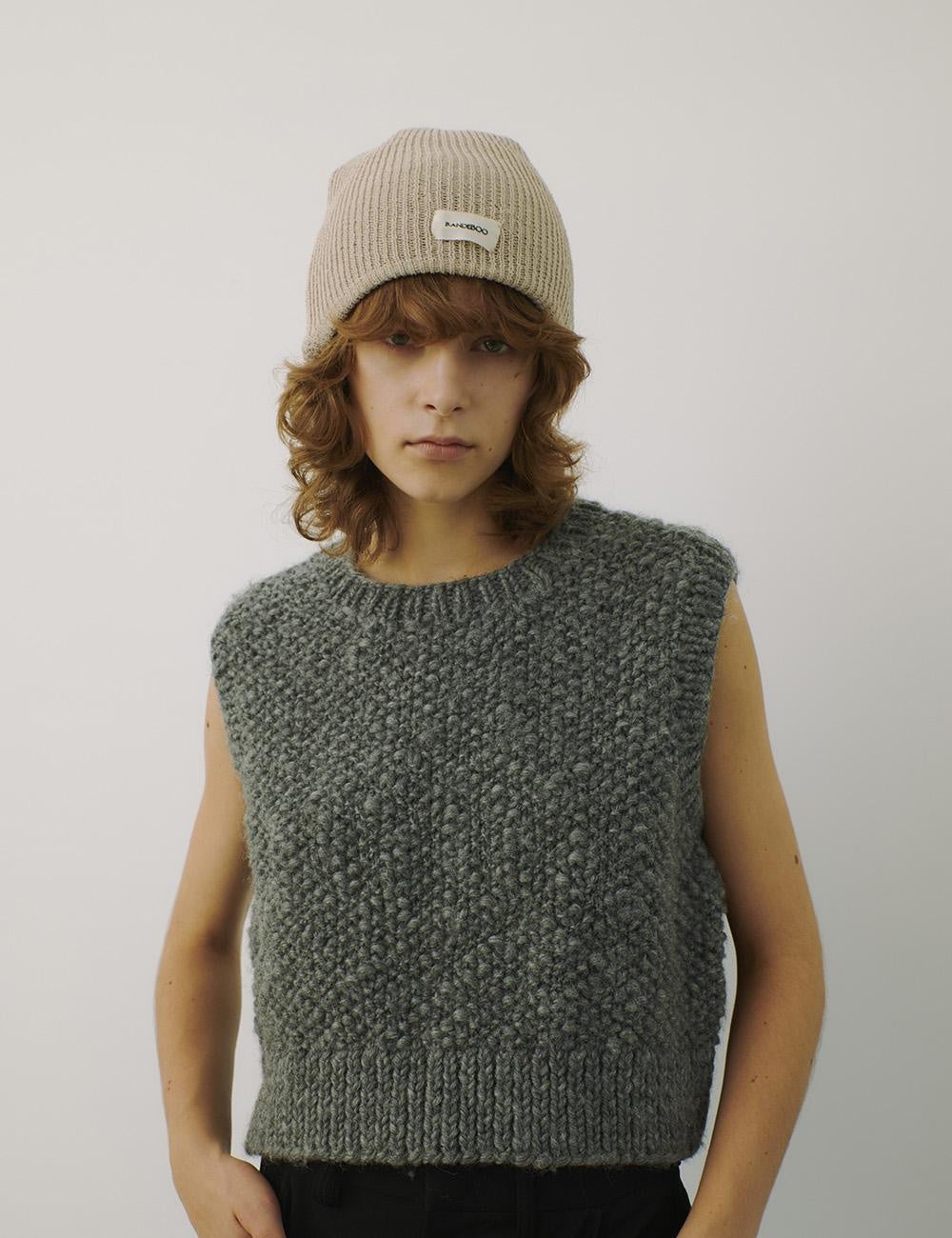 やや太めの糸でざっくり編み上げたあたたかみのあるニットベスト。