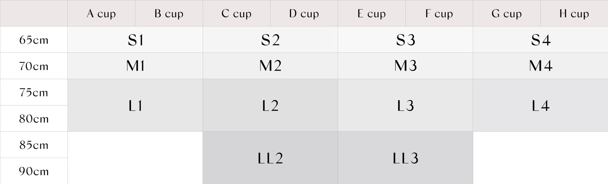 ブラSize:アンダー65cm〜90cm、カップA〜Hに対応した14サイズ