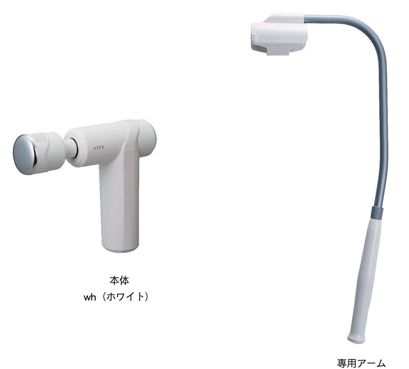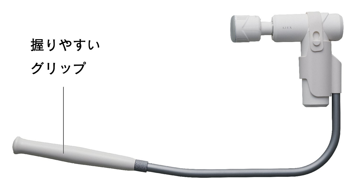 従来モデルから好評を得ていた、独自設計の専用アームを本モデルにも継承しました。背中や腰など手の届きにくいところへもセルフでケアが可能です。セットアップもスライド式で簡単にでき、グリップ部分には滑りにくく握りやすい素材を使用しています。