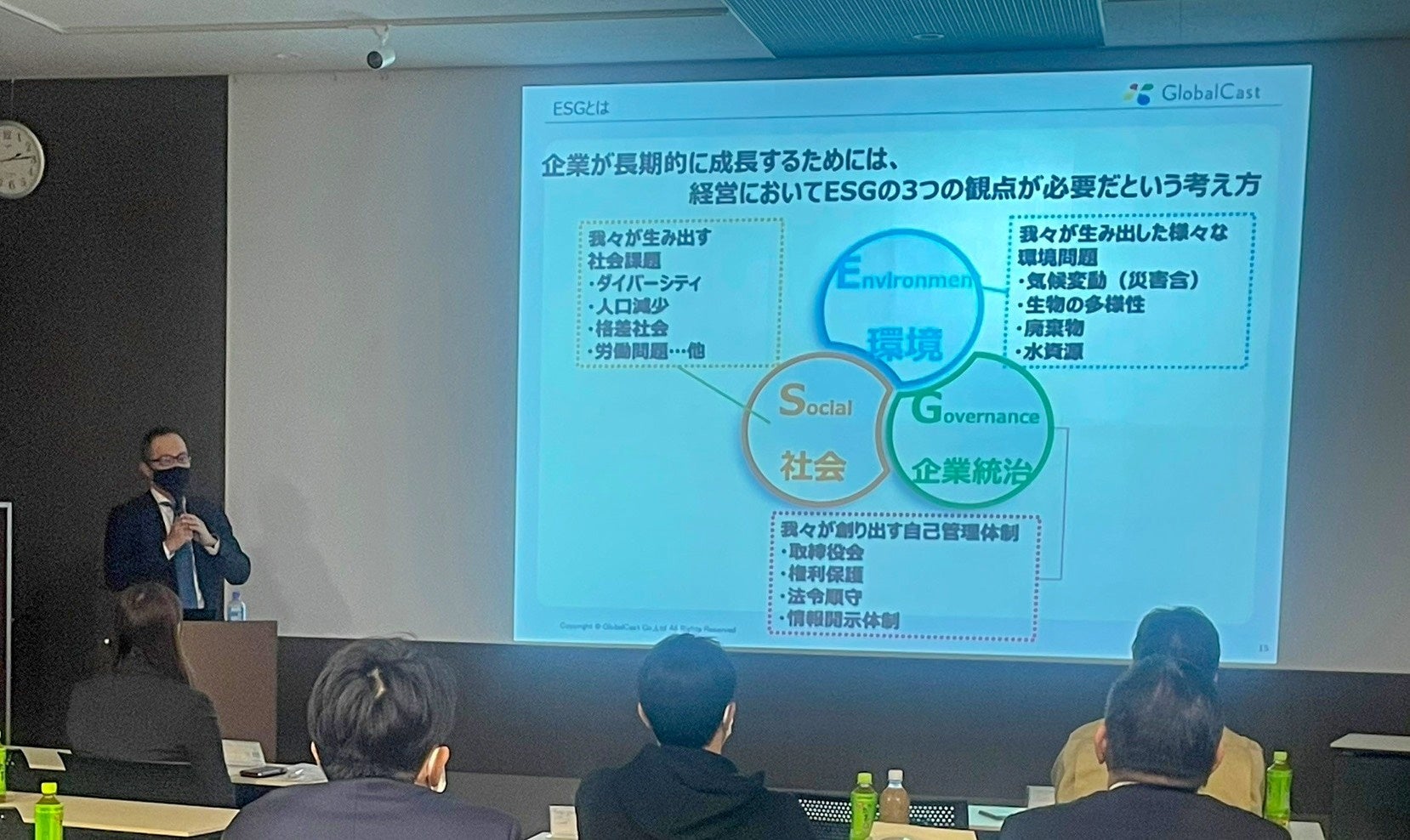 マーケティング支援や教育事業を展開する株式会社グローバルキャスト(所在地 愛知県名古屋市中村区、代表取締役 川口 英幸)は、兵庫県洲本商工会議所が主催する「SDGsへの取組と企業価値」をテーマにした講演会にて、洲本商工会議所の会員の方々を対象に、森川 太輔(グローバルキャスト 取締役)による「SDGs/ESGを念頭に置いたこれからの経営」と題した講演を行いました。