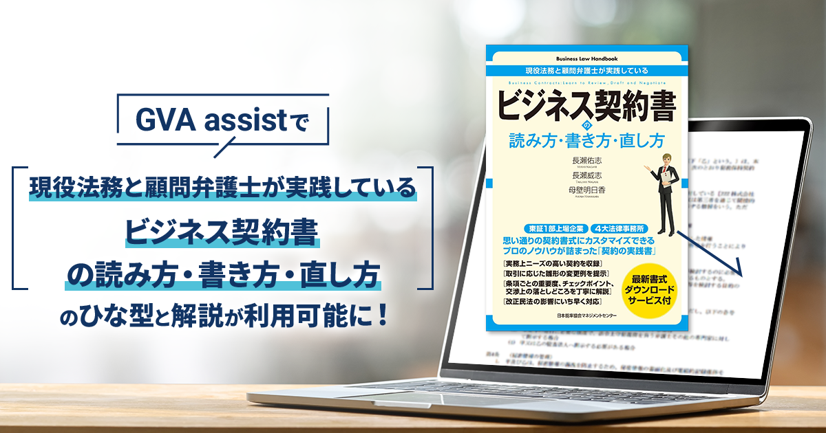 AI契約書レビュー支援クラウド「GVA assist」に、書籍「現役法務と顧問弁護士が実践している ビジネス契約書の読み方・書き方・直し方」の契約書ひな型と解説を搭載。