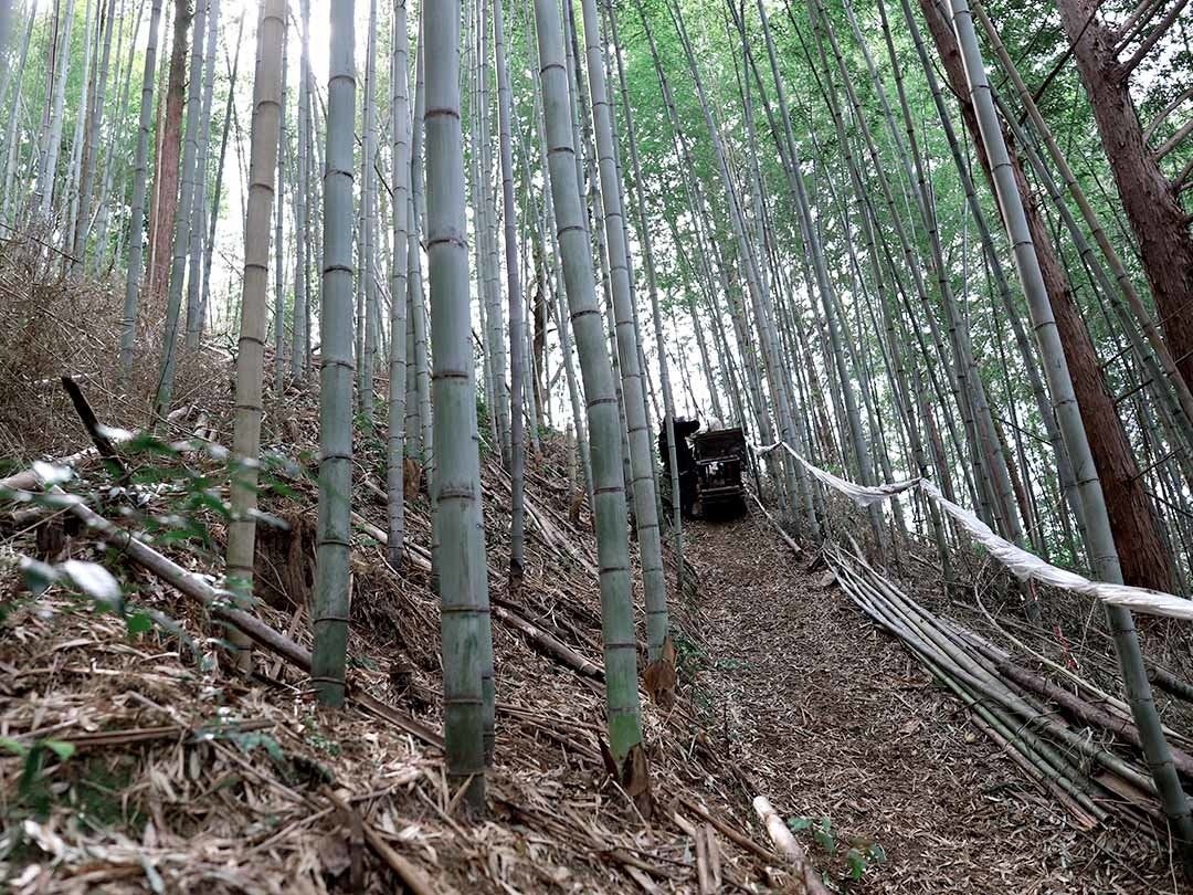 切り出された虎竹は、運搬機によって慎重に山から降ろされます。竹林の複雑な道を安全に下るために改良された運搬機が、虎竹の独特な模様を損なわず運ぶ手助けをしています。この工程一つひとつには、虎竹を守り続けるための長年の工夫と情熱が込められています。