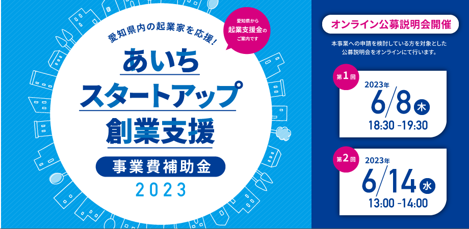 愛知県内の起業家を応援。「あいちスタートアップ創業支援事業費補助金(起業支援金)」の公募を6月1日(木)より開始。