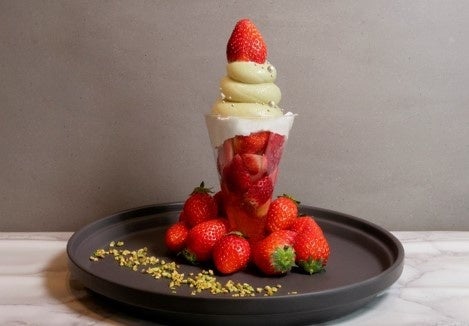 この時期ならではのフレッシュな苺「とちおとめ」をカップいっぱいに詰めました。自家製ジャスミンティージュレの香りと、苺の甘酸っぱさ、ピスタチオの芳醇な香り・濃厚な風味を贅沢に楽しめる一品です。