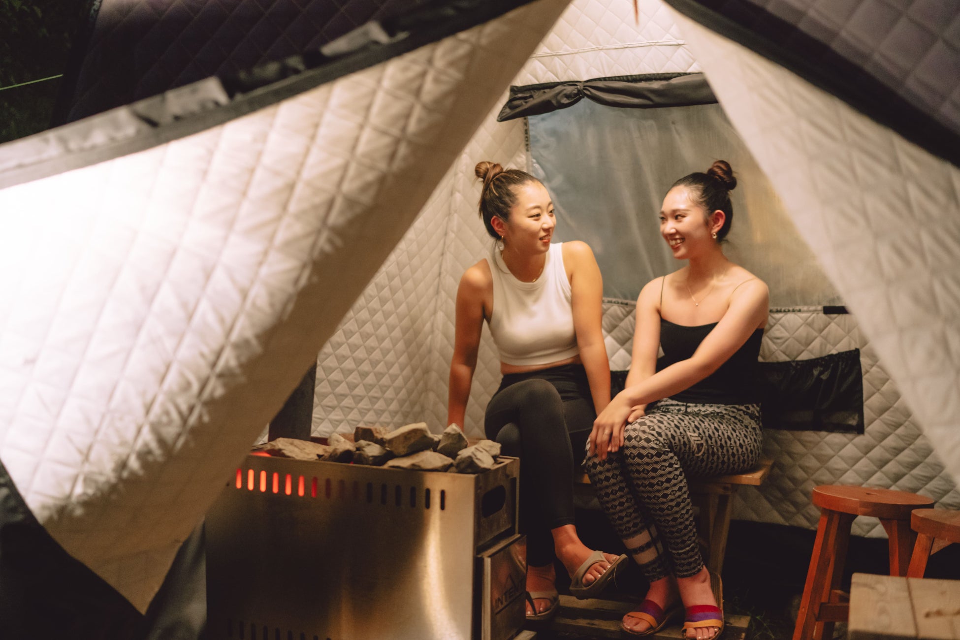 セルフロウリュを行えばテント内の温度はたちまち80℃まで上昇。身体を芯まであたためた後は心地好い夜風に包まれながらの外気浴へ。星空を眺めながら、ぼーっと心と身体を充電させるようにととのう。ゆっくりと何も考えない息抜き時間をお過ごしいただけます。