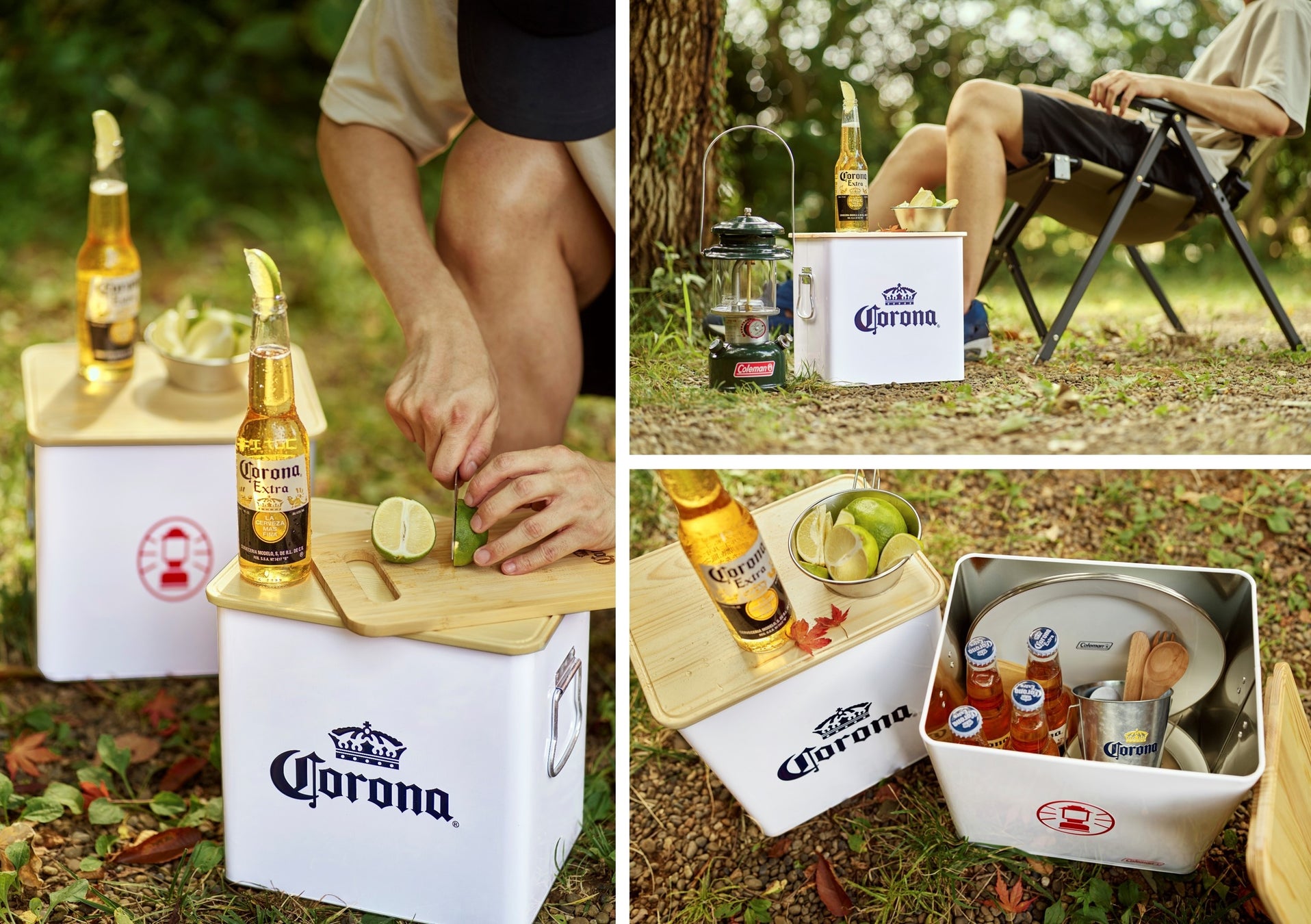 コロナビールは人生における本質的な豊かさや歓び、価値観の大切さを示唆するブランドメッセージ「THIS IS LIVING」の元、自然を愛し、日常の喧騒から離れ、仲間と一緒に掛け替えのない時間を作り出すきっかけを提供してきました。カットライムと一緒に楽しまれる、そのすっきりとした爽快感はどこにいても大自然にいるような開放感をもたらします。一方でコールマンは100年以上にわたって信頼性と耐久性に優れた様々なアウトドア製品を世に送り出してきました。アウトドアで「家族」「仲間」「自然」が触れ合い、心の繋がりが生まれる瞬間に寄り添って来ました。本コラボレーションは都会の喧騒から離れ、自然の中で過ごすことで生まれるかけがえのない瞬間や心の繋がりを大切にするという共通のパッションを持つ2ブランドがタッグを組み、アウトドアを楽しむライフスタイルをさらに豊かにしたいという想いで実現しました。