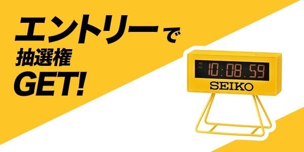 参加者全員から抽選で10名様に「セイコー ミニスポーツタイマー クロック」をプレゼント!数々のスポーツイベントで活躍のセイコースポーツタイマーをモチーフにした、遊び心あふれるクロック。鮮やかなイエローと存在感のあるボディは、インテリアとしてもおすすめのアイテムです。