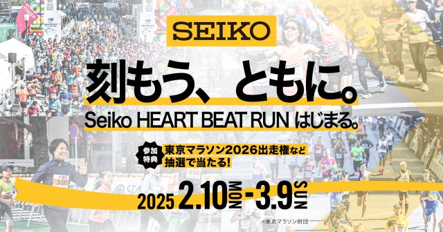 セイコーグループ株式会社(代表取締役会長 兼 グループCEO 兼 グループCCO 服部 真二、本社:東京都中央区、以下「セイコー」)は、2025年2月10日(月)から3月9日(日)までの28日間、セイコーがオフィシャルタイマーとして協賛する大阪マラソン、東京マラソン、名古屋ウィメンズマラソン開催と連動したセイコー初のバーチャルラン企画「Seiko HEART BEAT RUN」を開催します。