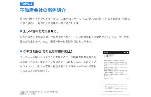 事業内容 :Googleビジネスプロフィール・HP・各SNSの一括管理サービス「Canly(カンリー)」の開発・提供