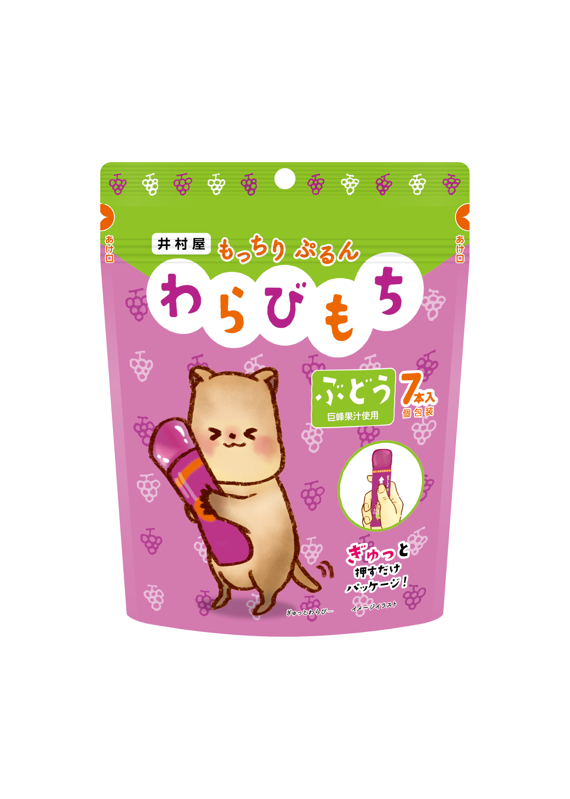 このたび、「ギュッと押すだけパッケージ」シリーズの新商品として『もっちりぷるんわらびもち ぶどう』を