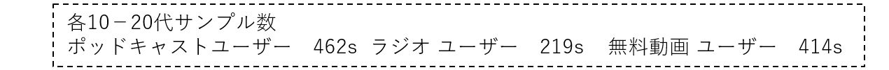 ポッドキャストとの比較対象としてラジオ、無料動画ユーザーに対しても同じ項目を聴取