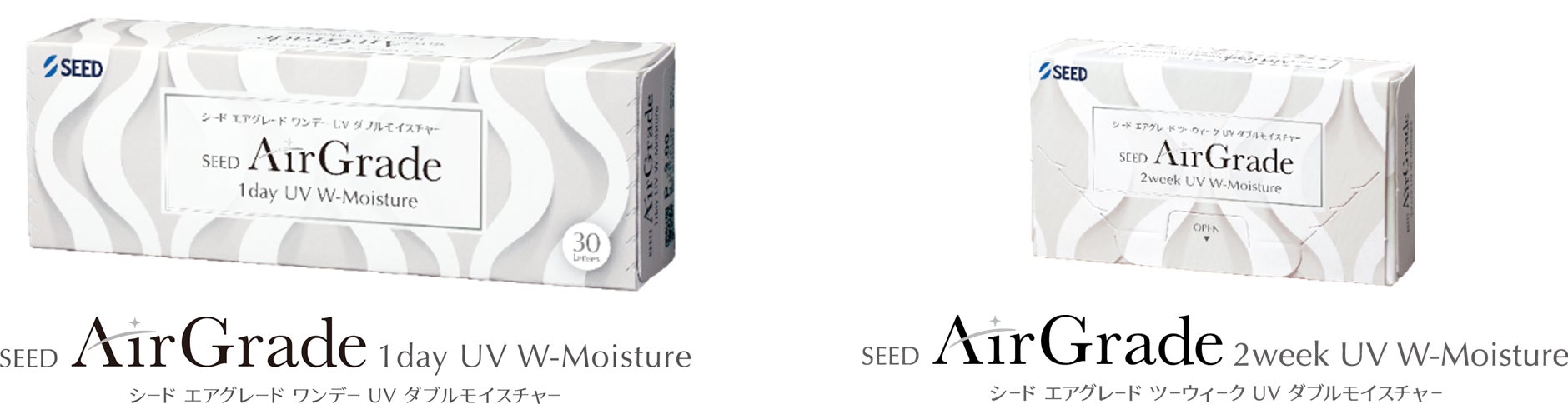 2022年8月に発売した「シード AirGrade 1day UV W-Moisture(シード エアグレード ワンデー UV ダブルモイスチャー)」は、機能性とデザイン性を兼ね備えた1日使い捨ての高酸素透過性シリコーンハイドロゲルレンズとして、多くの皆さまからご好評いただいております。2024年3月には「シード AirGrade」シリーズとして、2週間交換ソフトコンタクトレンズ「シード AirGrade 2week UV W-Moisture(シード エアグレード ツーウィーク UV ダブルモイスチャー)」も発売開始いたしました。