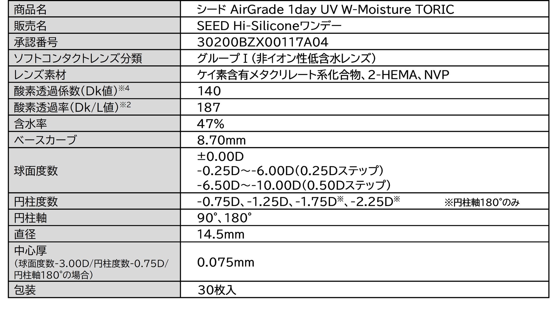 シード AirGrade 1day UV W-Moisture TORIC 商品特長・概要
