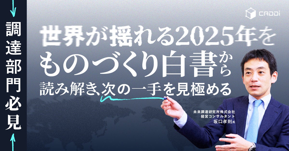 製造業のデジタル変革に挑むキャディ株式会社(本社:東京都台東区、代表取締役:加藤 勇志郎)は、イベント「調達部門必見:世界が揺れる2025年を『ものづくり白書』から読み解き、次の一手を見極めるステージ」を、2025年6月26日(木)の10:00~11:40に開催することをお知らせいたします。視聴は無料、事前申し込み制です。